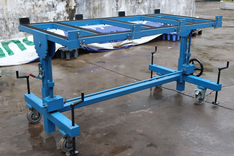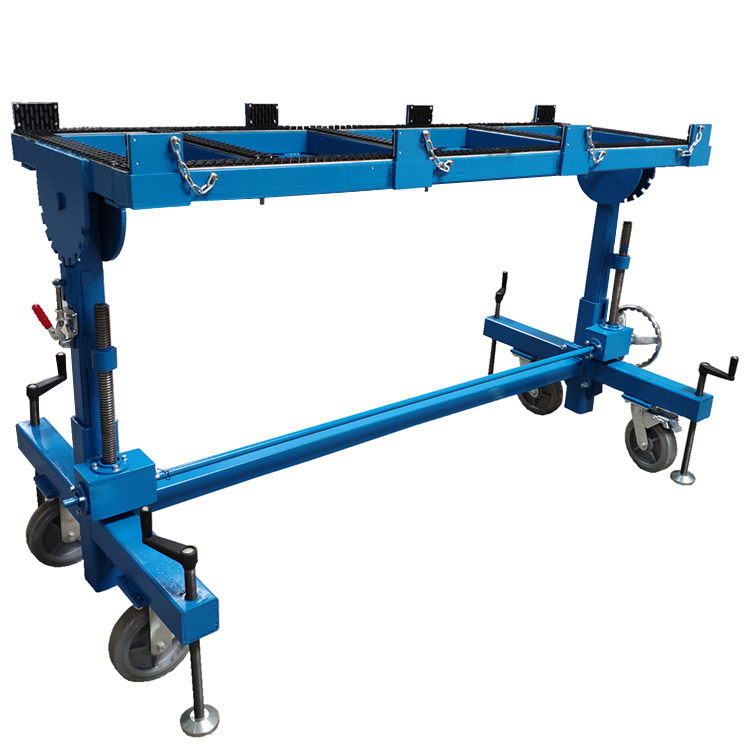工作臺是對已成型的工件進行切割、研磨或拋光的理想輔助工具。它可以翻轉0°-90°,臺面覆蓋橡膠層且帶有鎖定剎車腳輪。