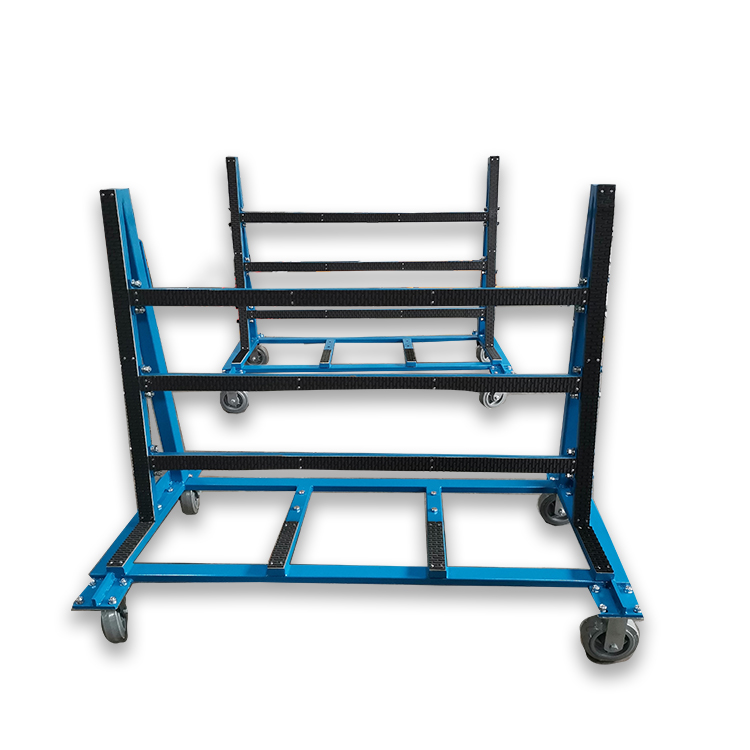 此設計用于廠區內外的板材運輸和儲存,支架表面覆蓋一層橡膠層,保護板材免于刮傷。