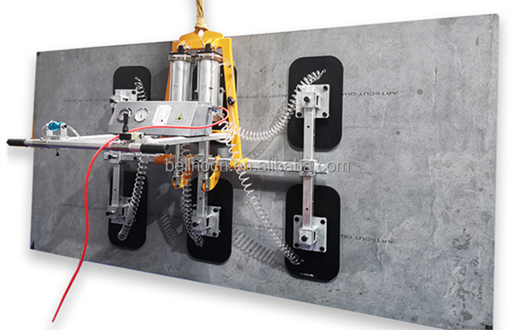 This vacuum lifter is designed to lift smooth or rough marble and granite slabs. Pneumatic vertical-horizontal tilting 0 to 90°.